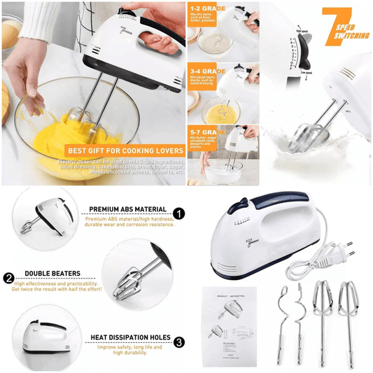 Electric Scarlett Hand Mixer – 7-Speed Egg Beater with Chrome Beaters