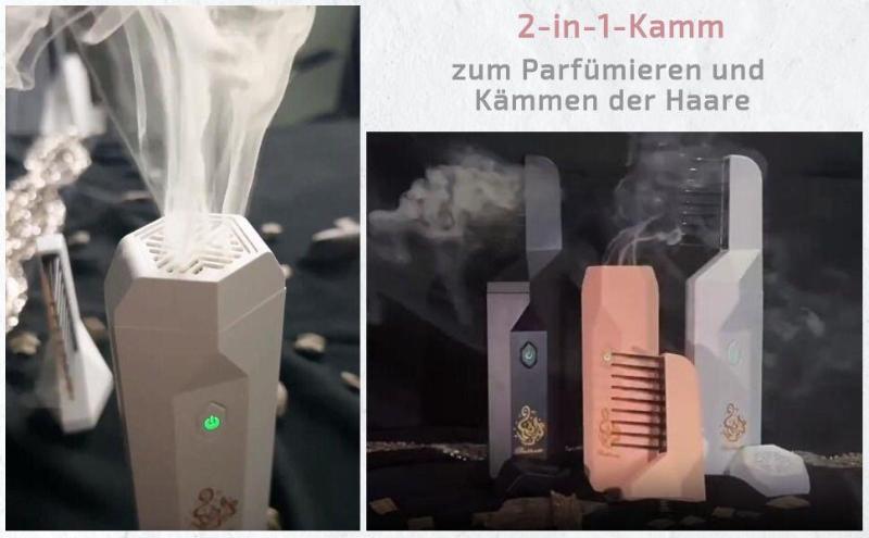 The **2-in-1 Hair Bakhoor Comb with Diffuser** combines hair grooming with a traditional fragrance experience. This innovative comb features a built-in diffuser that allows you to enjoy the soothing scent of bakhoor while styling your hair. The comb evenly distributes the fragrance through its diffuser, making it ideal for daily use or special occasions. This multifunctional tool offers both haircare and a pleasant aroma, perfect for those who appreciate beauty and fragrance rituals.