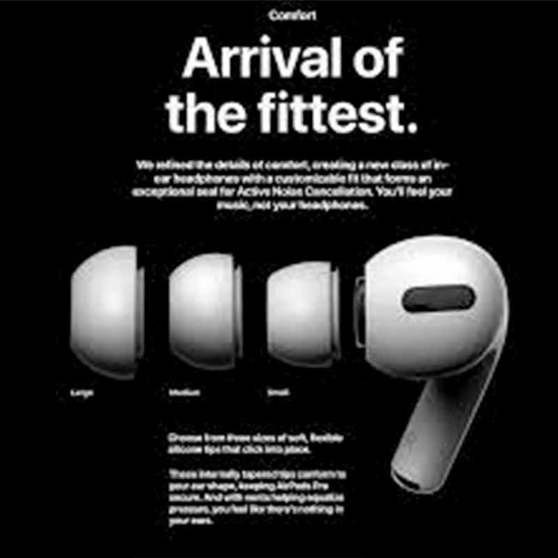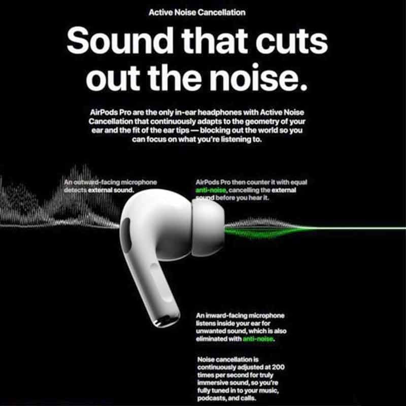 salepoint presents apple airpods pro 3 anc wireless bluetooth earphone active noise cancellation active noise cancellation yes communication wireless volume control yes style in ear sensitivity 120db wireless type bluetooth is wireless yes support app yes function for internet bar function monitor headphone function for video game function common headphone function for mobile phone function hifi headphone function sport model number airpods pro waterproof no with microphone yes features apple siri support features active noice cancelling weight 0 50 kgs