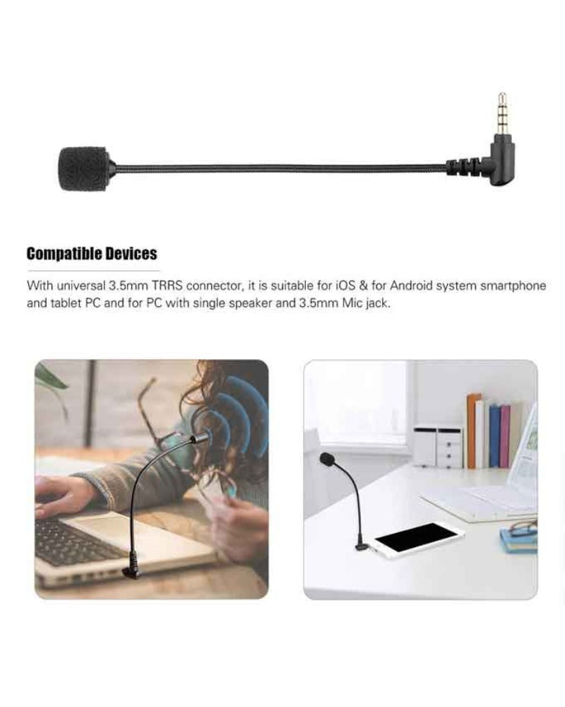 Omni directional condenser microphone lightweight and portable plug in and work convenient in use with universal 3 5mm trrs connector it is suitable for ios for android system smartphone and tablet pc and for pc with single speaker and 3 5mm mic jack adopt high sensitivity mic head featuring precise sound pickup can be applicable in multi scenes such as live video streaming conference recording game voice etc compatible with most entertainment app with video audio functions flexible style design can easily change the bending direction of the mic for better sound pickup specification brand name boya model number by um4 style gooseneck microphone use computer mobile laptop microphone polar patterns omnidirectional communication wireless transducer condenser microphone set type single microphone what 39 s in the box 1 x boya by um4 mic 1 x user manual product size l x w x h cm 10 x 12 x 2