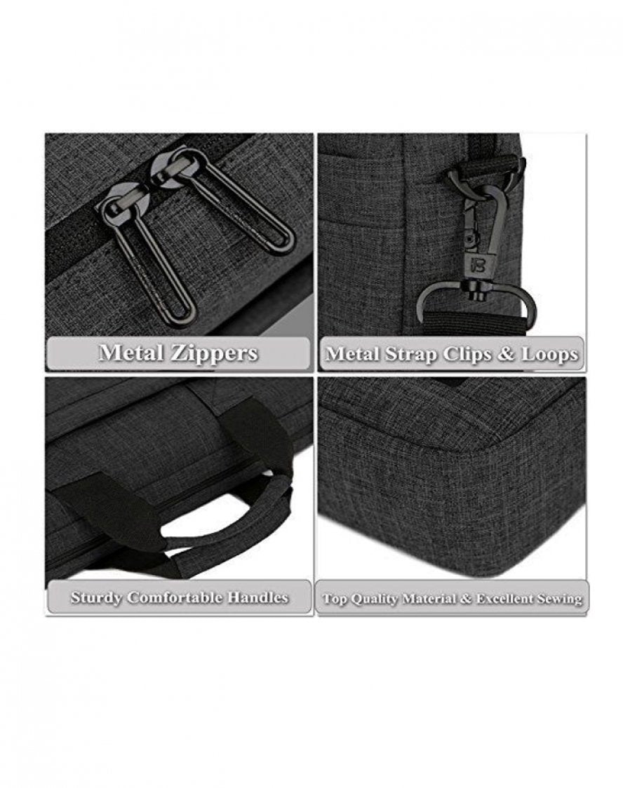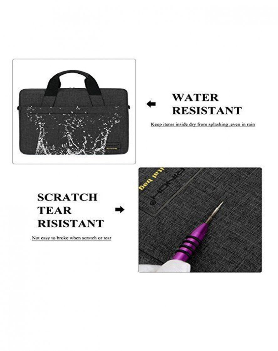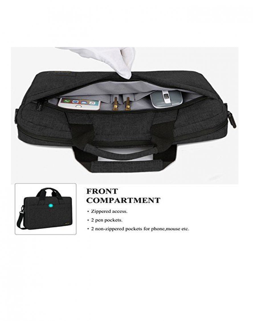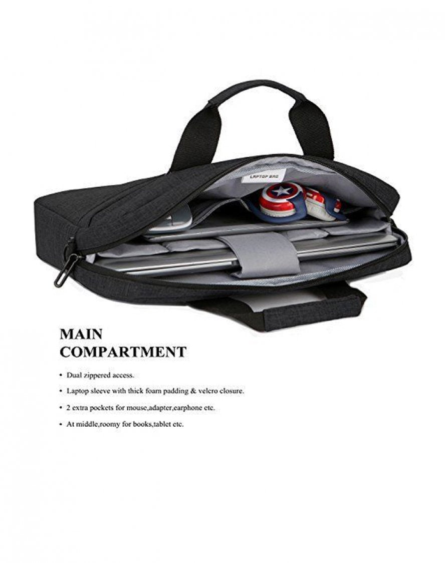 Made of quality anti tear lightweight fabric features a thick foam padded laptop sleeve with velcro strap in main compartment that protects your laptop from accidental bump shock scratch 2 non zippered pockets can hold mouse adapter and middle is very roomy for big items such as books zippered front compartment with 2 small pockets and 2 pen pockets inside is ideal for your phone pens etc a back belt is designed on the back that is easily fixed to trolley suitcase firmly on travel comes with a removeable and adjustable pu padded shoulder strap and dual sturdy handles for long time comfortably carrying sizes exterior 43x31x8cm 16 9x12 2x3 1inch laptop sleeve 40 5x28cm 15 9x11inch fits most 15 15 6 inch laptop notebooks macbook ultrabook chromebook apple macbook acer asus dell fujitsu lenovo hp samsung sony toshiba etc may not snugly fit all computers due to variations in the sizes of different models