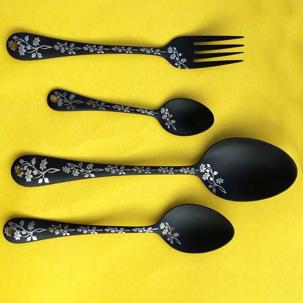 Salepoint presents 14 guage black coated steen less steel cutlery set quality of product is very awesome all spoons are decent in weight which will make your dinning table very beautiful