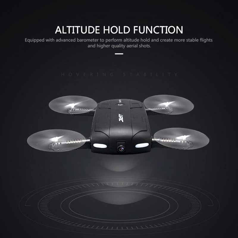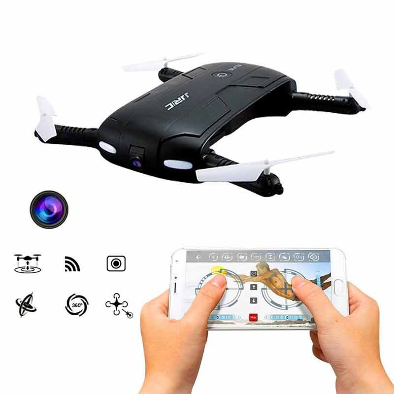 Title drone camera jjrc elfie hd h37 detail designed to be portable the aircraft features a foldable design allowing for carrying anywhere on the go without hassle the wifi enabled fpv camera is mounted on the aircraft to broadcast the live video to the pilot on the ground so that the pilot is flying the aircraft as if he she is onboard the aircraft instead of looking at the it from the pilot s actual ground position in altitude hold mode the aircraft maintains a consistent altitude while allowing roll pitch and yaw to be controlled normally headless mode a function through which the aircraft will consider the direction opposite to that of the remote control as the correct one by default when it flies to a height where the operator is not able to judge the direction of the aircraft head with bare eyes so that he she can go on with the remaining positions one press automatically taking off or landing rc quadcopter will take off or go back to the position where it took off just press the