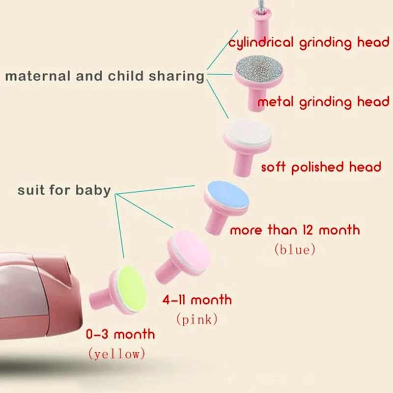 ✅6-in-1 professional nail care set includes 6 cushioned sandpaper heads for shaping and styling baby nails.