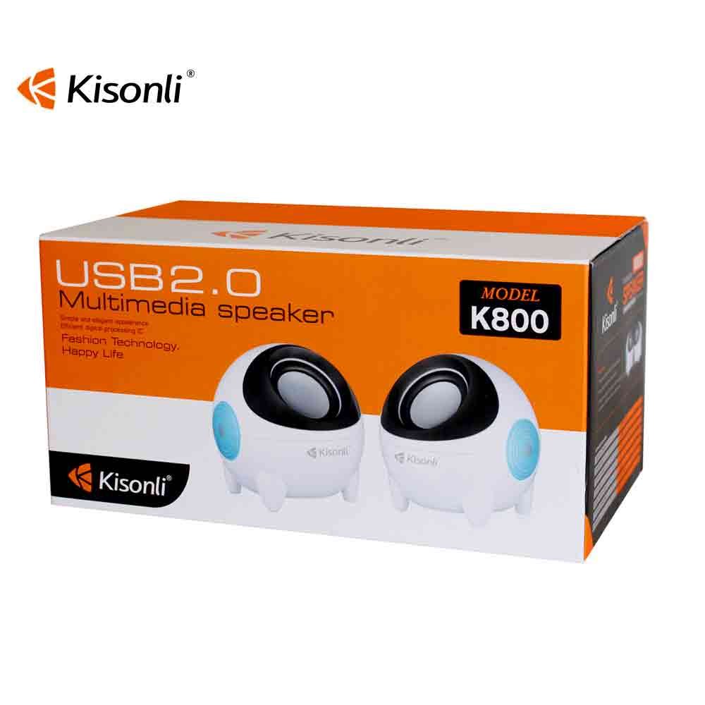 Kisonli k800 small mini speakers for pc detail kisonli k800 is a compact computer speaker powered via a convenient usb port easy to set up and can carry the laptop as a portable speaker or still be able to use the same pc system for users to press with the modern design of the speaker the turquoise black and white tone gives the tech look and elegance at the same time which will be hard to deny along with an incredibly affordable price tag connect the usb port to power the speaker and connect the audio via a 3 5mm port simple and compact the kisonli k800 speaker can be plug and play use immediately friendly to all users specifications brand kisonli model k800 use home theater portable audio player mobile phone product size 9 x 9 5 x 8 5 cm material plastic impedance 4 total system capacity rms 6w snr 80db frequency response 90hz 20khz sensitivity weight 0 50 kgs