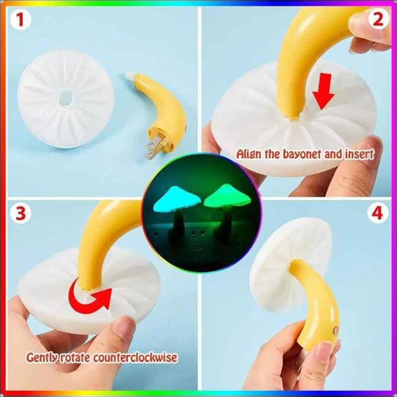 LED Night Lights Mushroom Shape Automatic Sensor Wall Lamps (Pack of 2)