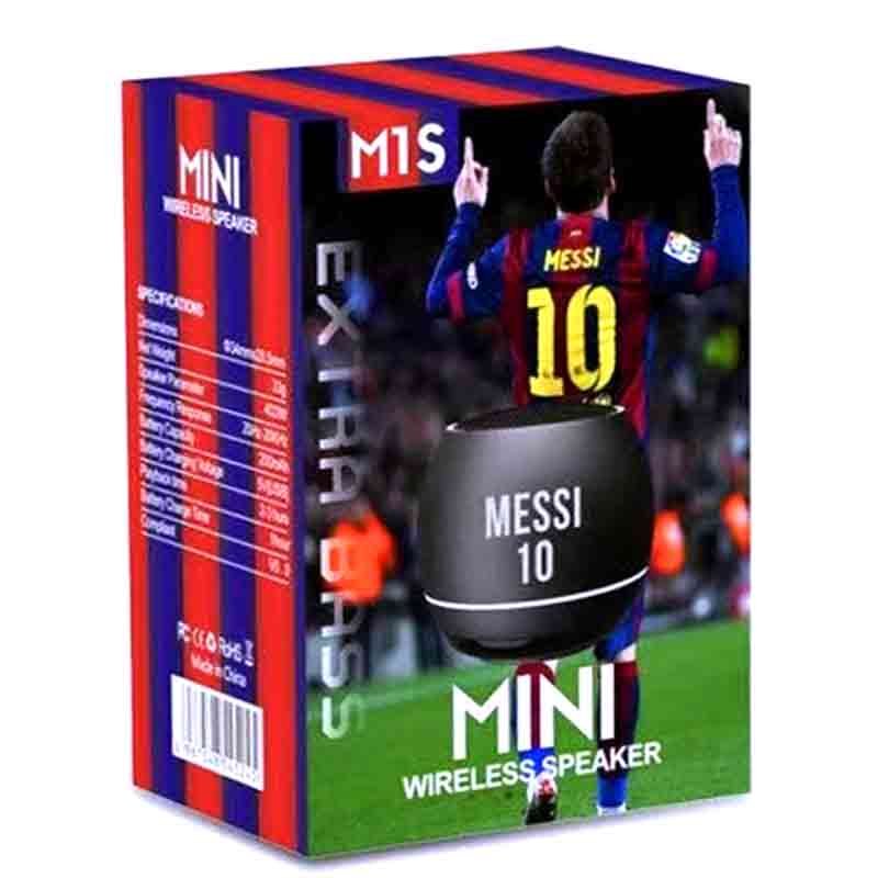 sale point offers in very reasonable price messi 10 mini bluetooth speaker extra bass m1s detail premium quality wireless with extra bass tiny size but impressively loud clear bass sound smart cute elegant shape design mini pocket size easy portable use when where ever you are bluetooth v4 1 distance 10m comfortable use battery 350mah playtime upto 3 4 hour charging time 1 hour weight 0 50 kgs