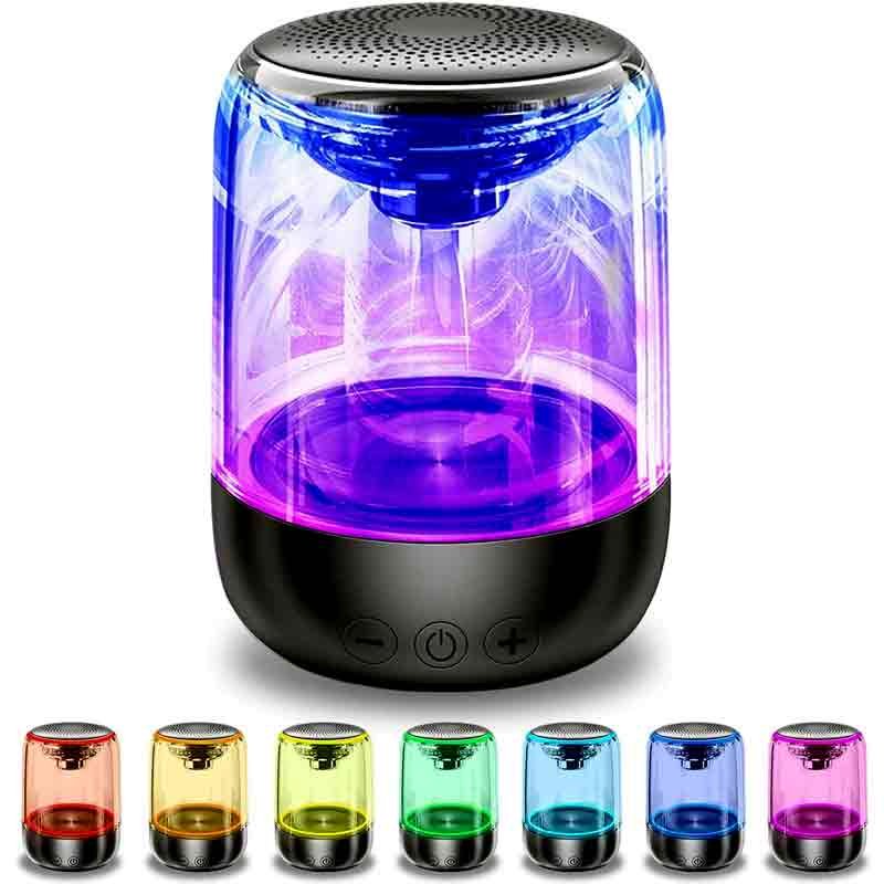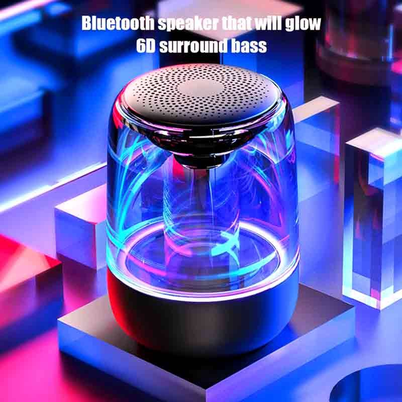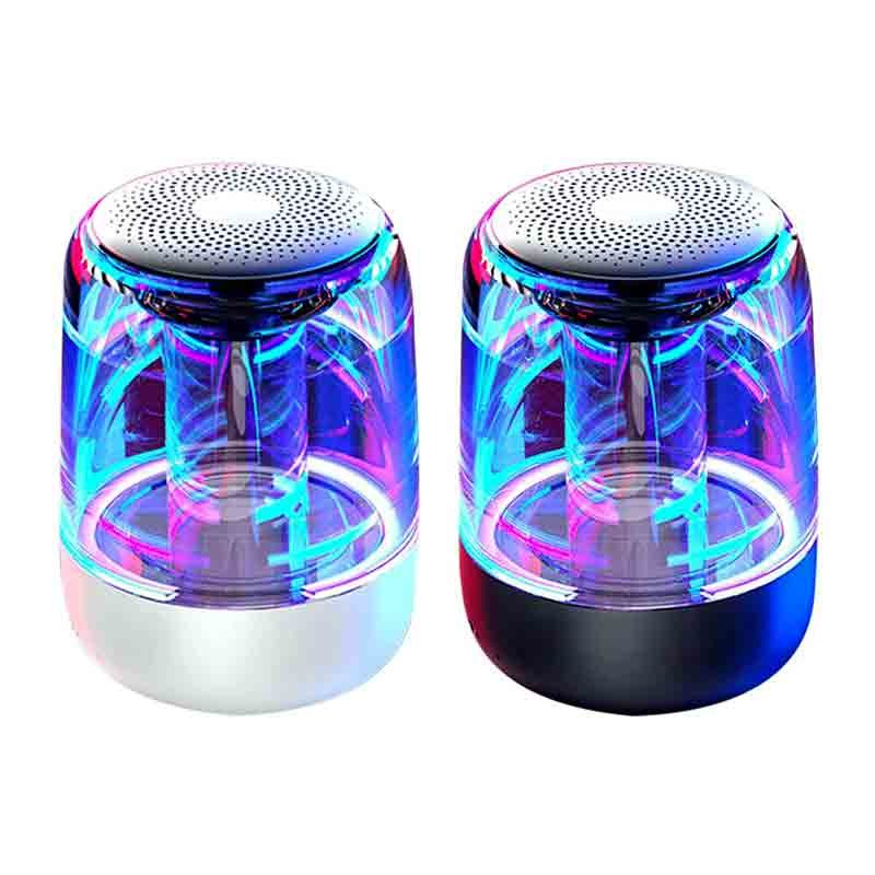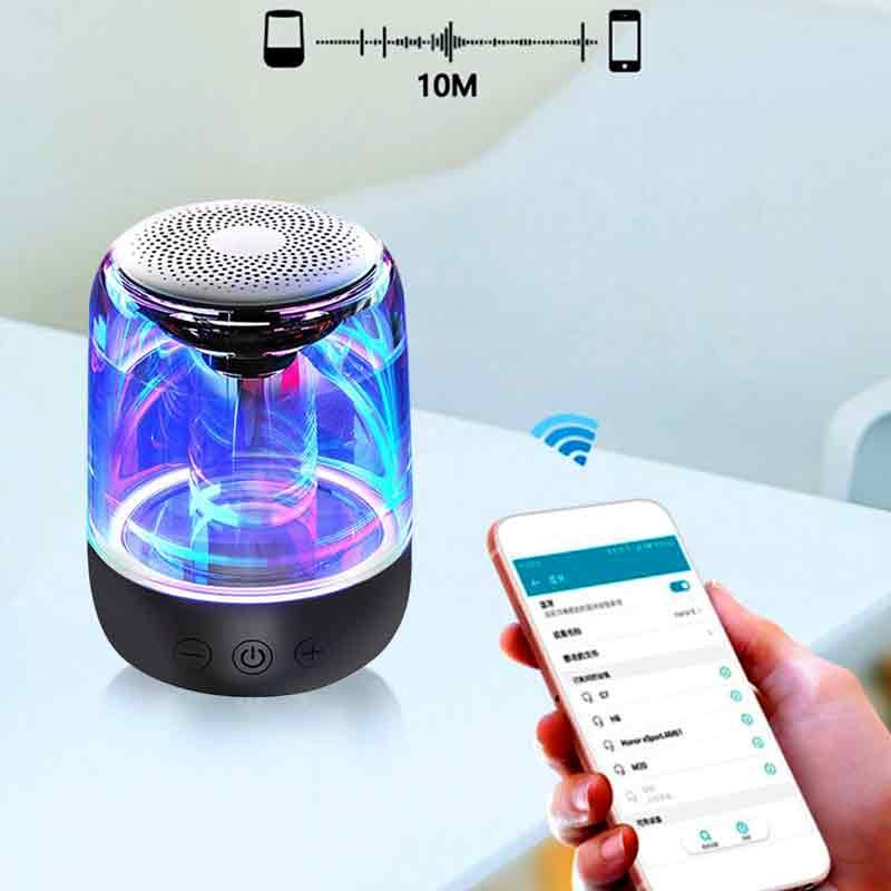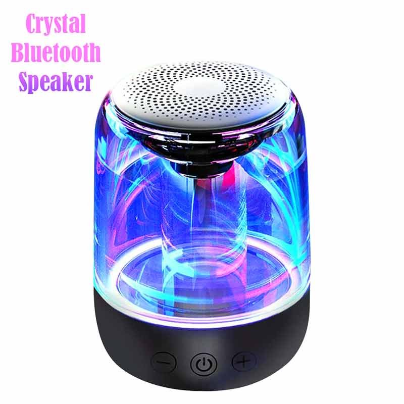 sale point brings a fabulous mini portable crystal glass bluetooth led colorful wireless stereo speaker this upgraded crystal glass 5 0 bluetooth speaker with led colorful lights and with its brilliant bass sound makes your moments unforgettable this mini small portable crystal glass bluetooth wireless stereo speaker available in black and white color with a battery of 2000mah and 2 4 ghz frequency range you can enjoy music for up to 8 hours playback for wireless music streaming the mini small portable crystal glass bluetooth wireless stereo speaker easily connect to your android or ios smartphones or tablets or any of the bluetooth enabled devices from up to 10 feet away or if want to play music through tf card just insert it and enjoy the music with lower power consumption with more stable and more compatible with more bluetooth devices the product has the function of tws interconnection which can connect the same two products to form left and right stereo sound support tf card rea