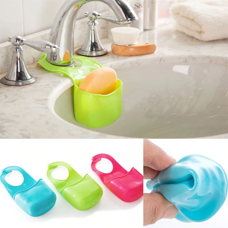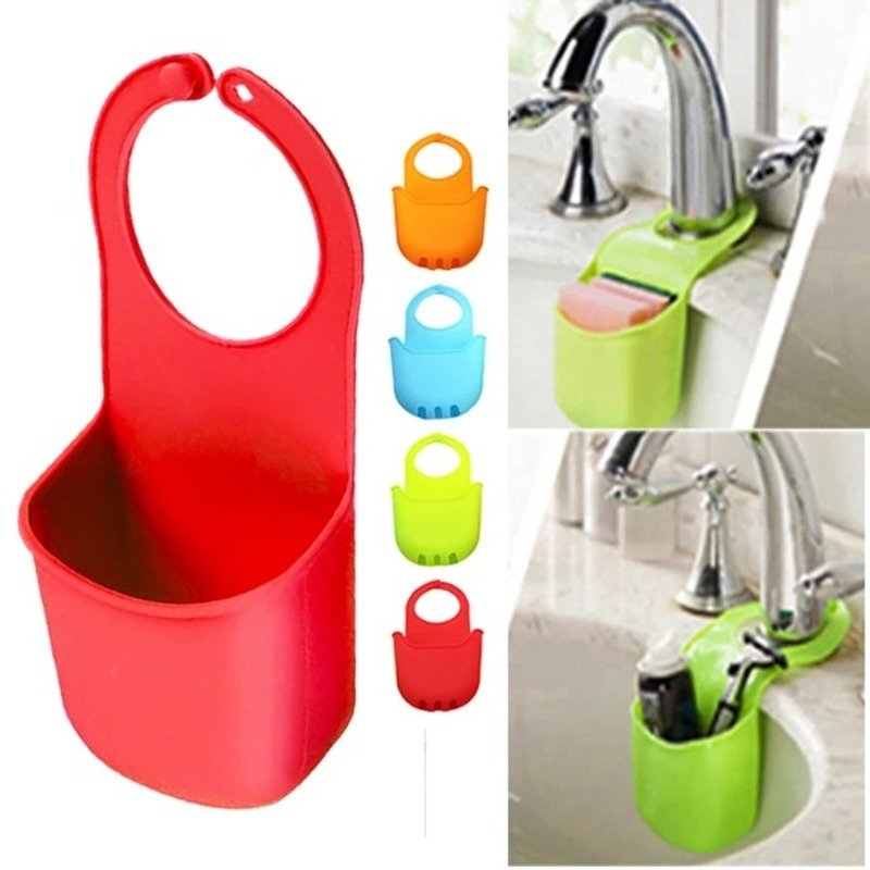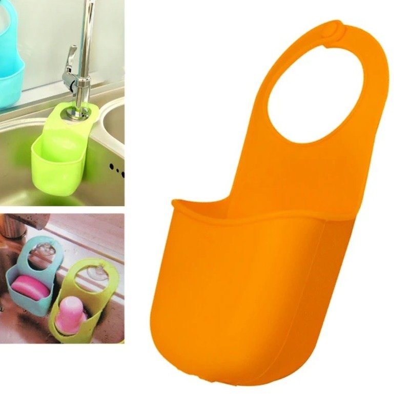 Pocket kitchen sink drain bathroom hanging silicon storage basket