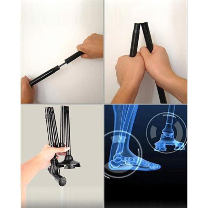Folding cane Stands up on its own, cushion handle Aluminum Stick Rubber base support.