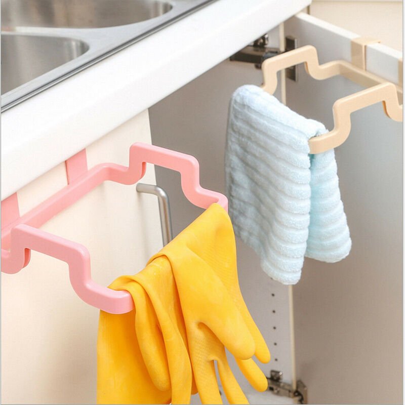 Set of 2 towel rack storage hook for kitchen cabinet door back plastic garbage bag shelf trash bag holder
