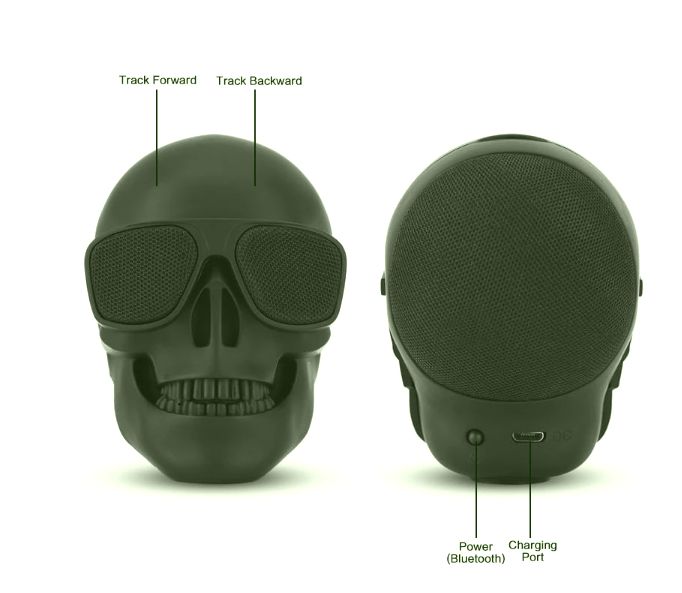 ✅Stylish skull-shaped Bluetooth speaker with eye-catching aesthetics.