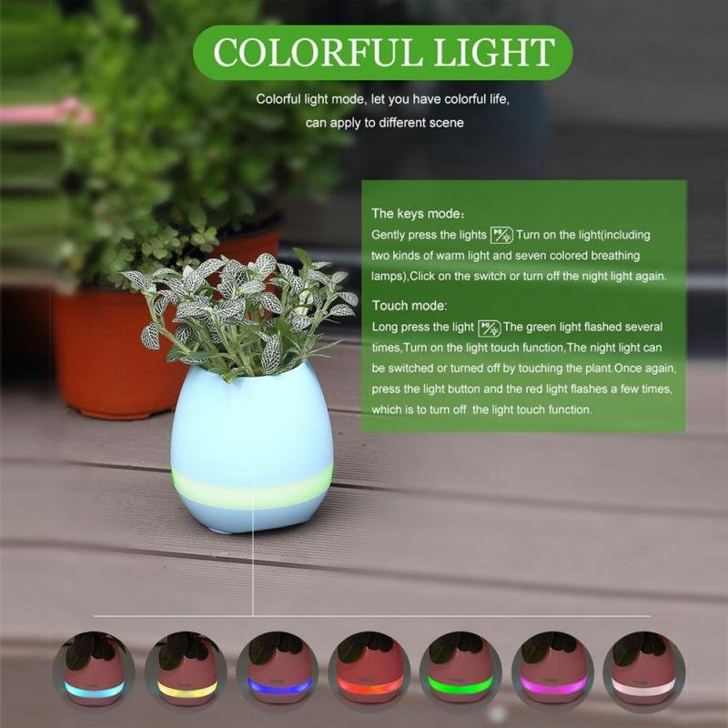 Bluetooth version v3 1 bluetooth way 10 m speaker 50 meters 5w3 signal to noise ratio 90db frequency response 20 20 khz battery capacity 1200 mah working voltage 3 7v charging parameters 5v 500mah charging time about 4 hours playtime is about 12 hours package includes 1 x music flower pots without plants 1 x usb cable 1 x user manual
