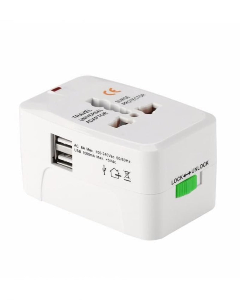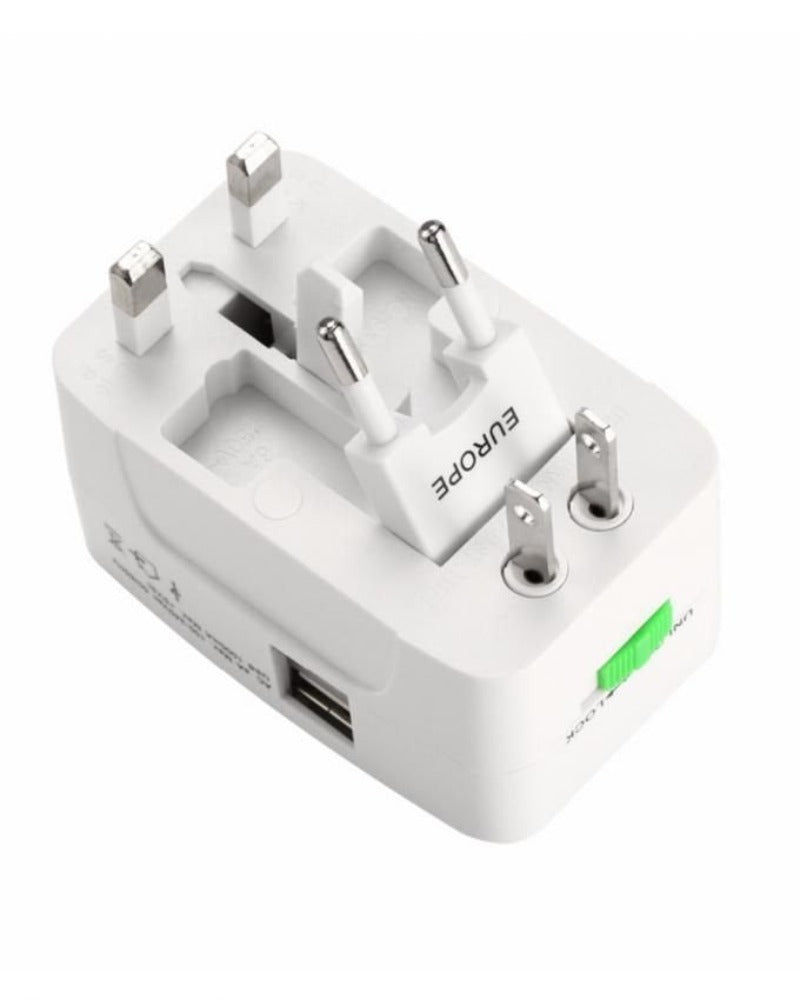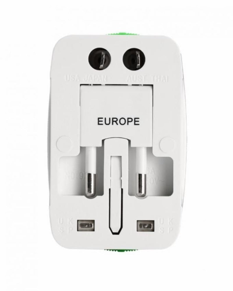 European to american flat pin outlet plug adapter american to u k two 4mm round pin outlet plug adapter american to european two 5 mm round pin outlet plug adapter american european to australian new zealand outlet plug adapter grounded american european to grounded u k outlet plug adapter this universal adaptor is a compact one piece unit with 4 international adaptors and provide a child protection safety shutter power indicator light and surge protector this item with fit the plugs in europe uk usa china japan australia spain and almost every country in the world lock unlock button green color power light indicator small and lightweight so easy travel convenience come with a bag for you bring it to travel suitable for all equipment without earthing