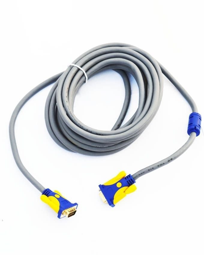 Vga cable connects a vga port to a monitor or a projector it is a premium quality vga cable of 5m length specifications type premium vga cable male to male length 5 meters number of pins 15 key features 1 works with pc monitor or anything with a vga port 2 supports high resolution package includes 1x 5m vga cable