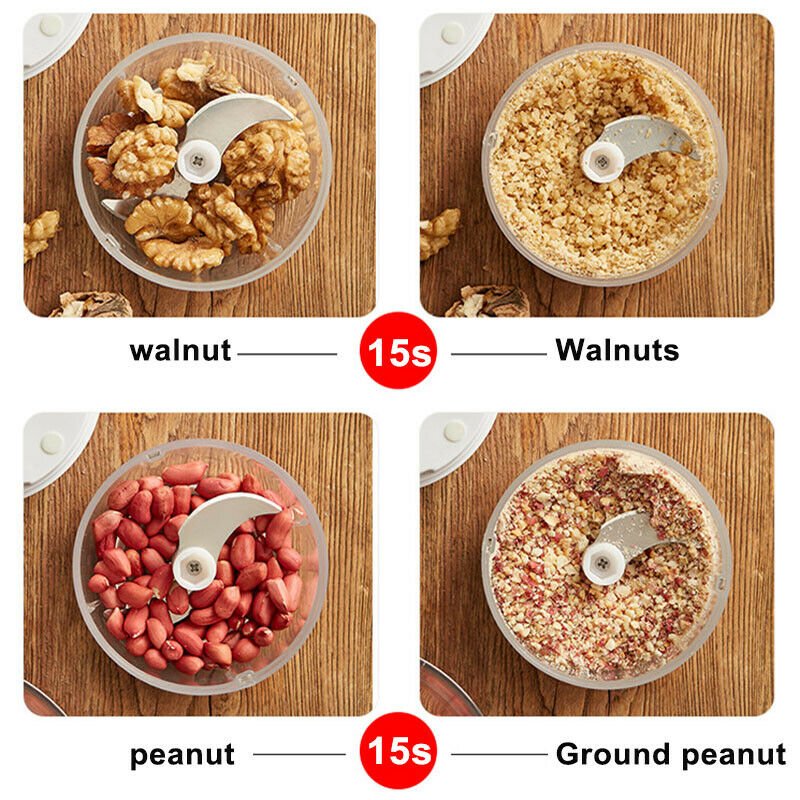 Save time and labor a chopper will help you cut garlic carrots vegetables nuts unique inner wall design waterproof easy to clean plastic material is bpa free usb can be charged multi purpose chopping machine stainless steel pp blades the battery voltage is 3 7v rated current 1a rated power 45w capacity 250ml size 250ml 13 9 2cm package include 1 x electric food chopper 1 x manual 1 x charging cable buy with confidence click on order now if it has quality problems we will also refund unconditionally if you have any questions or concerns please feel free to contact 24 7